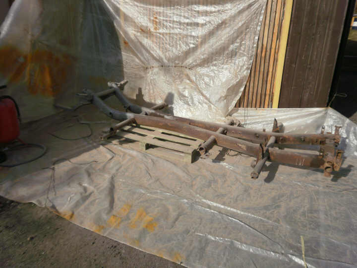 During the spring, work has progressed with the chassis. The brake system have been restored and the frame with all the details including rear and front axle with the wheels have been blasted and painted.
