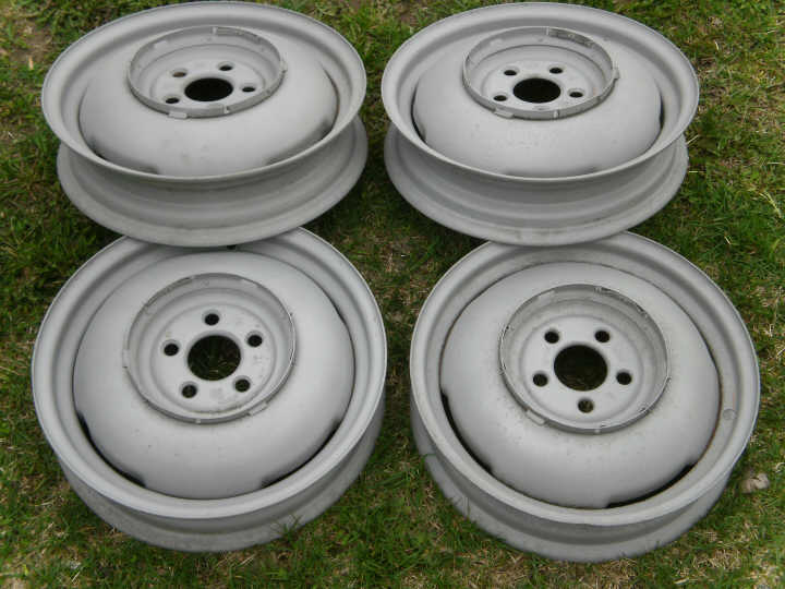 Nyblästrade fälgar. Nu väntar grundfärg och sedan lackering.