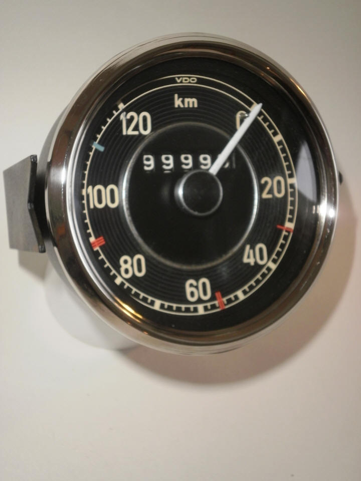 Hastighetsmätaren efter renoveringen. Även kilometerräknaren nollställdes.