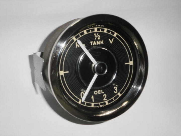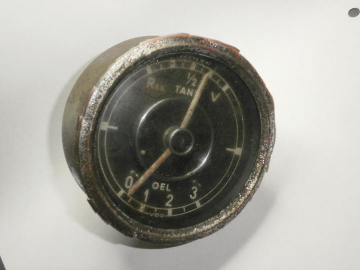 The combined fuel & oil pressure instrumet. The fuel gauge is purely mechanical, consisting of only one input shaft that is connected directly to the pointer through an arm and twisted about 0-90°, depending on the sensor in the tank. Although the instrument looked poor and worn out, it worked perfectly. It only needed to be cleaned, lubrication and some new paint.
