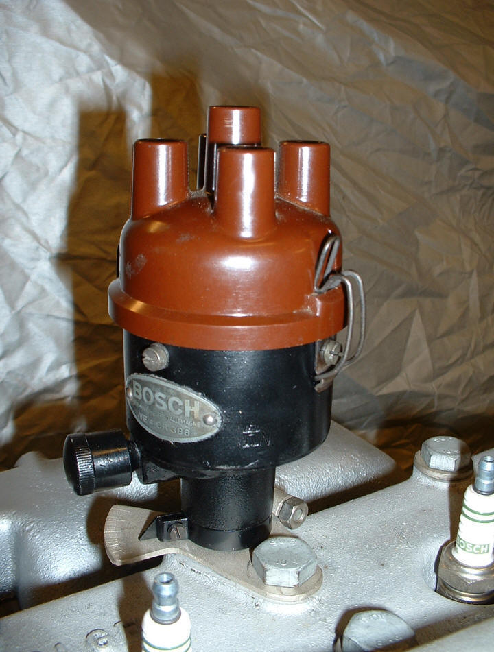 Cleaned and reconditioned distributor, with the new parts. New holes and new pins were made in the lathe carrier to eliminate the gap in the drive shaft. Now it is only the ignition cables left to connect.