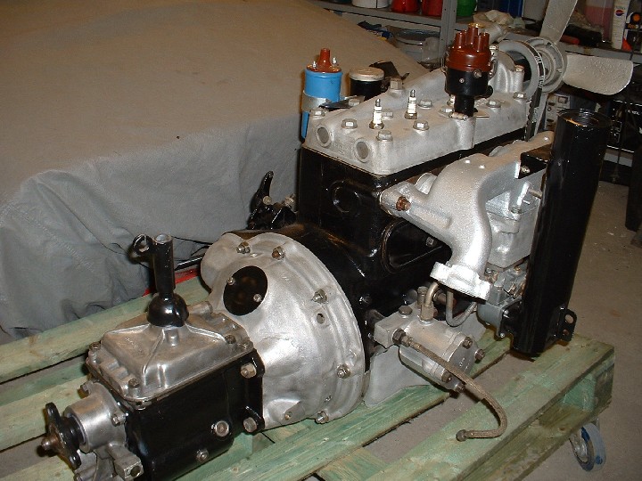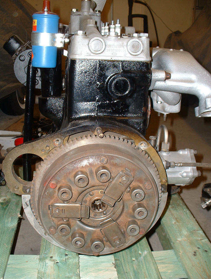Första etappen klar! Motor och växellåda monterade med alla de olika delarna. Nästa steg i renoveringen är ramen med fram- och bakaxeln, tillsammans med bromsarna.
