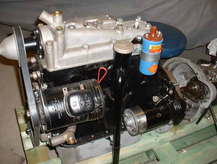 The starter that was rebuild earlier, has fount its place on the left side of the engine block.